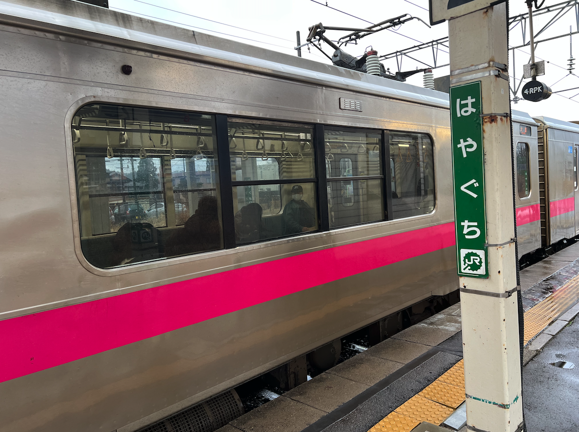 私は、小学校まで追分に住んでいました。追分は最近では甲子園で準優勝した金足農業で知られるようになりましたが、父は金農の教員をしており、私たちは教員宿舎に住んでいました。追分は楽しい思い出がたくさん詰まった土地です。車窓からは金農や、踏切側にあった同級生のお店も見え(まだ営業していたんですね~)、いつかは降りてみたいなあと思い通り過ぎました。