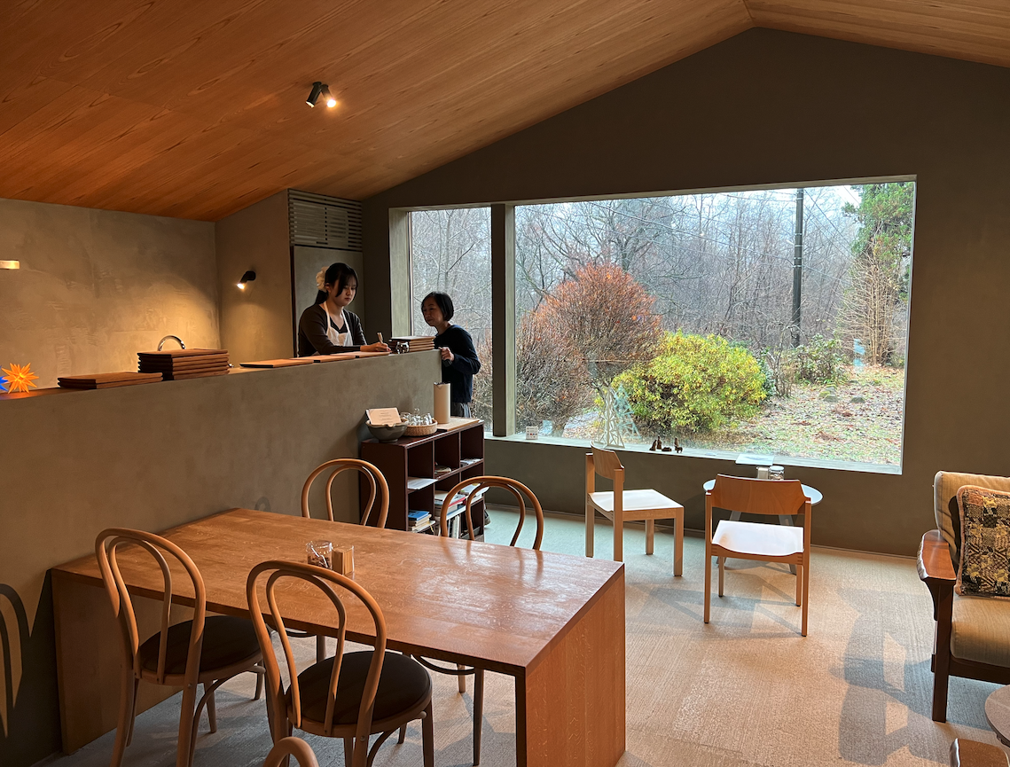 「your wear」の佐藤孔代さんは湘南で創作活動をしていましたが、約10年ほど前に拠点を、故郷の秋田に移しました。手動機や手編みのぬくもりのある丁寧なものづくりに定評があり、セレクトショップなどでも人気のブランドです。昨年、大館市岩瀬に「HASHINOTAMOTO(はしのたもと)」というカフェをオープンしたと伺っていたので尋ねました。お祖母さんが使用していた農作業小屋を利用して、建築家のご主人が設計したもので、本当に素晴らしく、大館市内はもとより、SNSを見て遠くから来てくださる方も多いようです。カフェやニット作品のことはまた改めてブログにします。