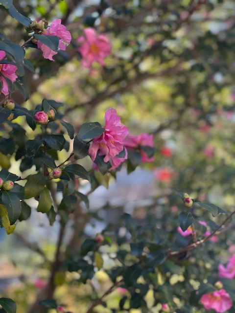 ⬆️家の裏庭に毎年咲くツバキ。花びらばっさり散ります💦